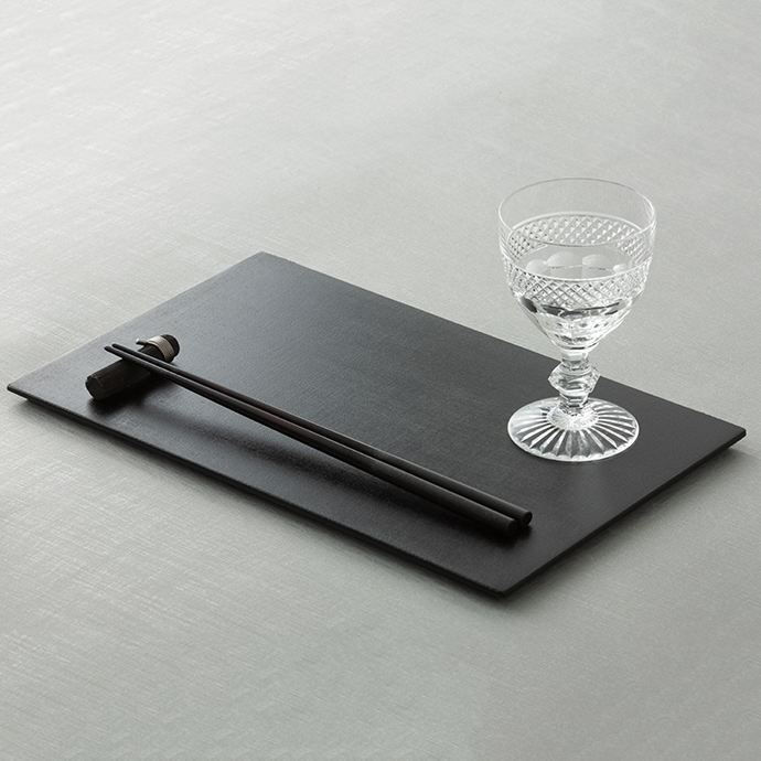 麻布を木地に貼り、備長炭漆を施した漆トレーです。